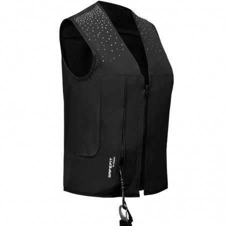 S’inspirant des gilets de protection conçus pour la moto ou le ski, le gilet airbag SAFEFIT, en cas de chute, se déclenche mécaniquement et ultra-rapidement avant impact afin de protéger les zones vitales de votre corps comprenant l’abdomen, la cage thoracique, le cou, le dos et plus précisément la colonne vertébrale.