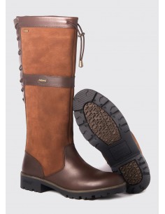 La botte Dubarry Glanmire à un système de laçage à élastique qui s'étire et s'ajuste aux différentes tailles de mollets s'entrelace à l'arrière de la botte le long d'un panneau en cuir qui contribue à allonger la jambe. Une botte à la hauteur des performances, puisque la technologie GORE-TEX, les cuirs DryFast-DrySoft™ et les semelles solidement collées offrent des bottes chaudes, imperméables et résistantes. Idéales sur les terrains difficiles, dans des conditions difficiles.