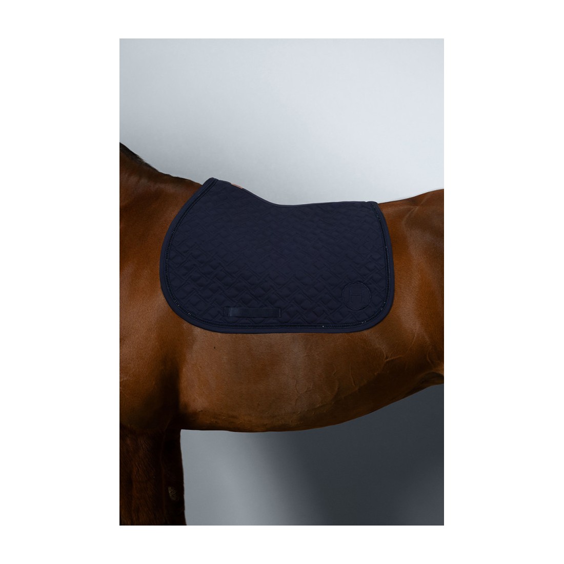 Tapis de selle Saphir de chez Harcour avec deux cordelettes ton sur ton et une ligne de strass resistant à l'eau