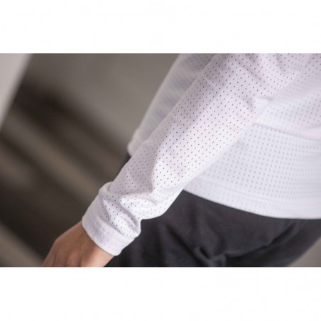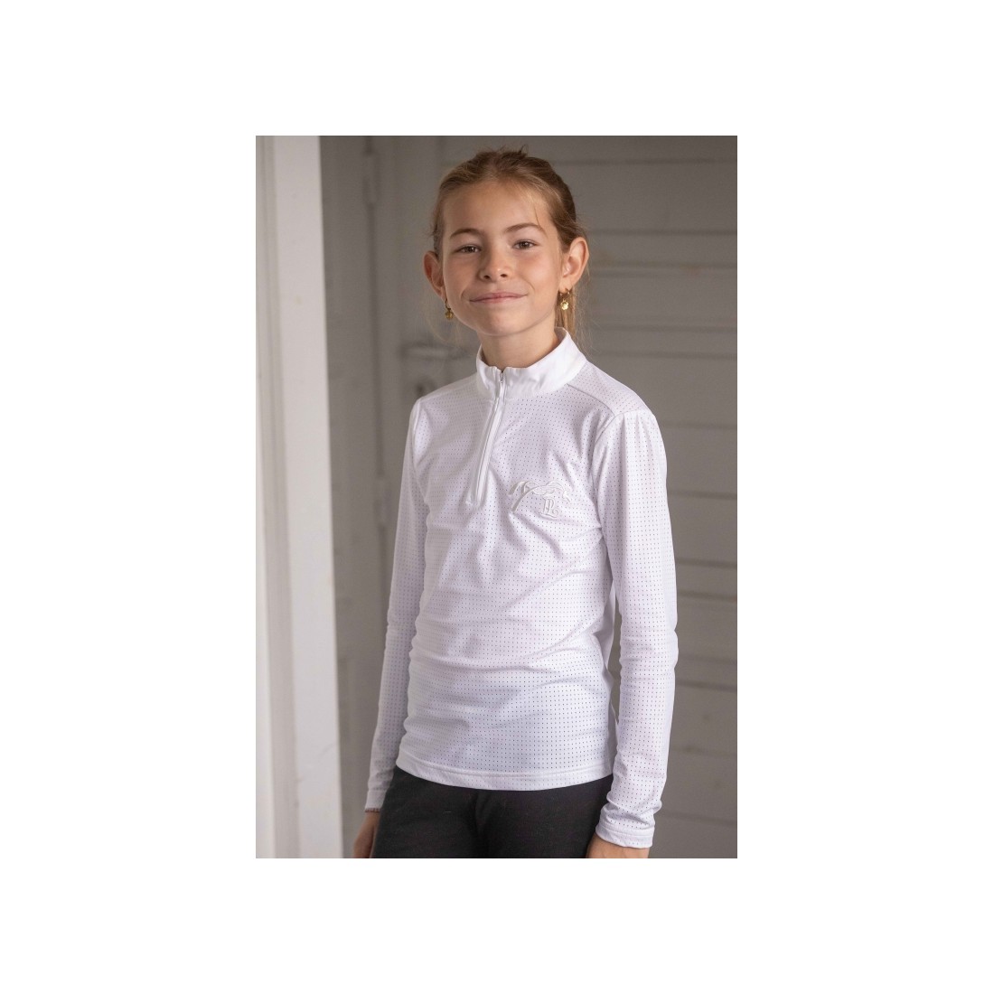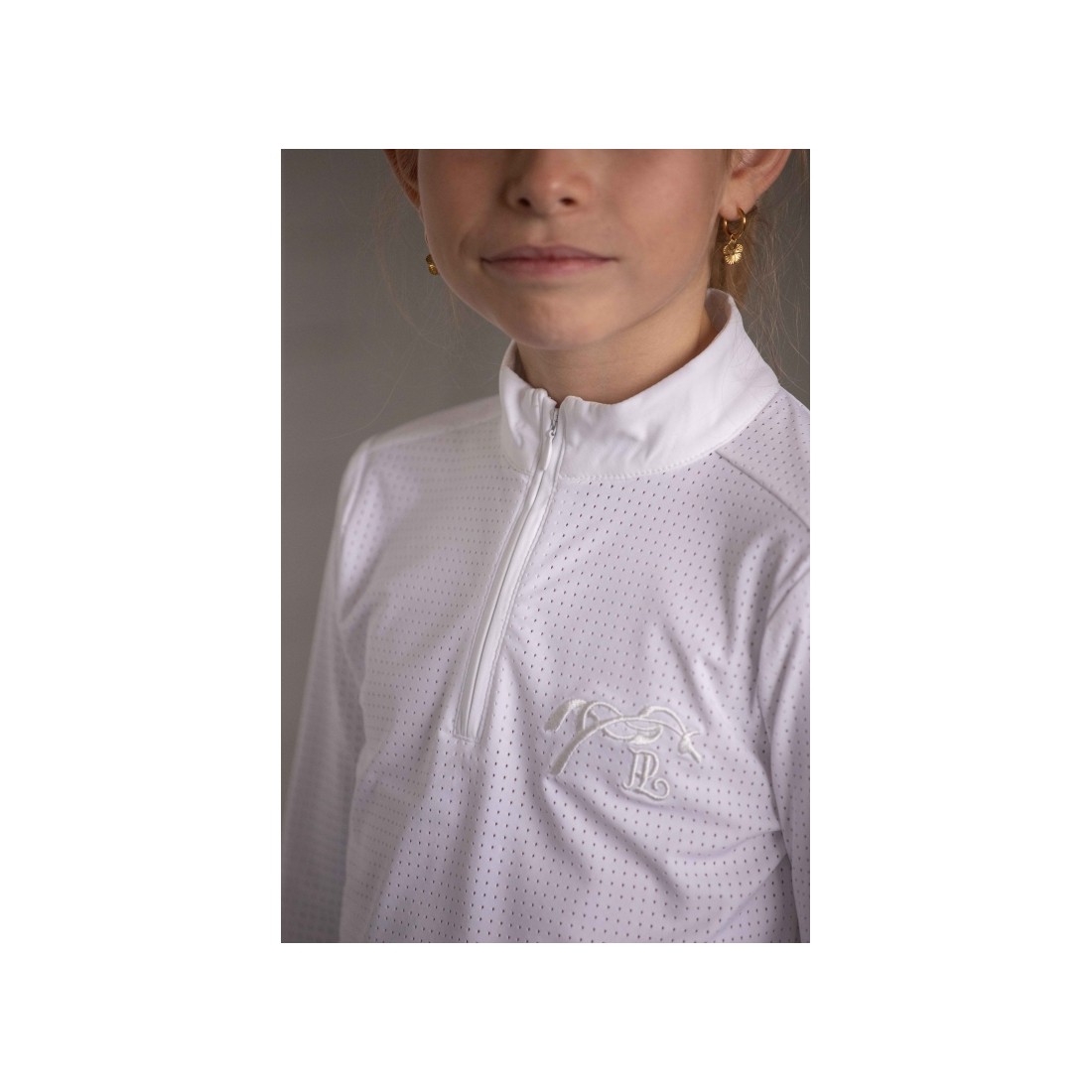 Le Polo de Concours Bruges Mesh à manches longues est confectionné dans un tissu micro aéré très légerconfortable et respirant. Il a un petit col montant blanc et se ferme sur le devant par un zip caché de 17 cm. Le logo Pénélope est brodé en 3D sur le cœur en ton sur ton.