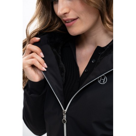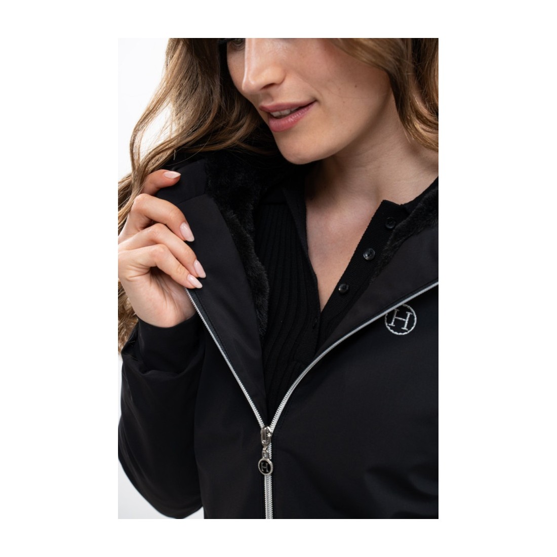 Elle offre un confort optimal contre le froid et les intempéries. Grâce à son intérieur en fausse fourrure, elle apporte une chaleur enveloppante et un vrai confort au quotidien, tandis que sa matière déperlante et coupe-vent protège efficacement de la pluie et du vent. Sa coupe droite et sa matière stretch assurent une grande liberté de mouvement, idéal pour l'équitation et la vie de tout les jours.