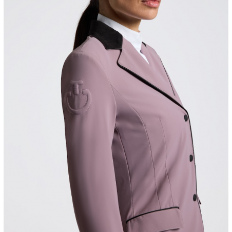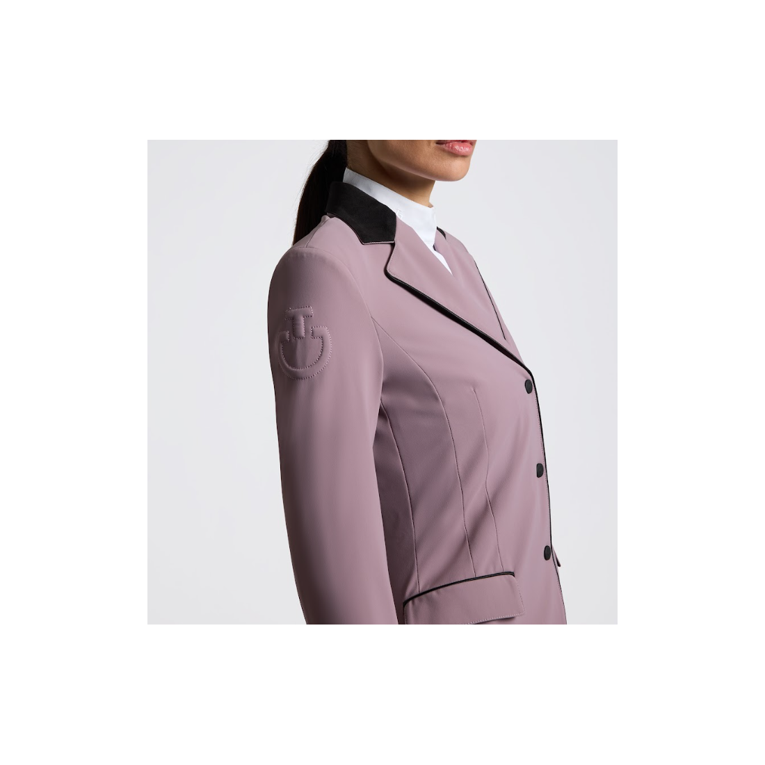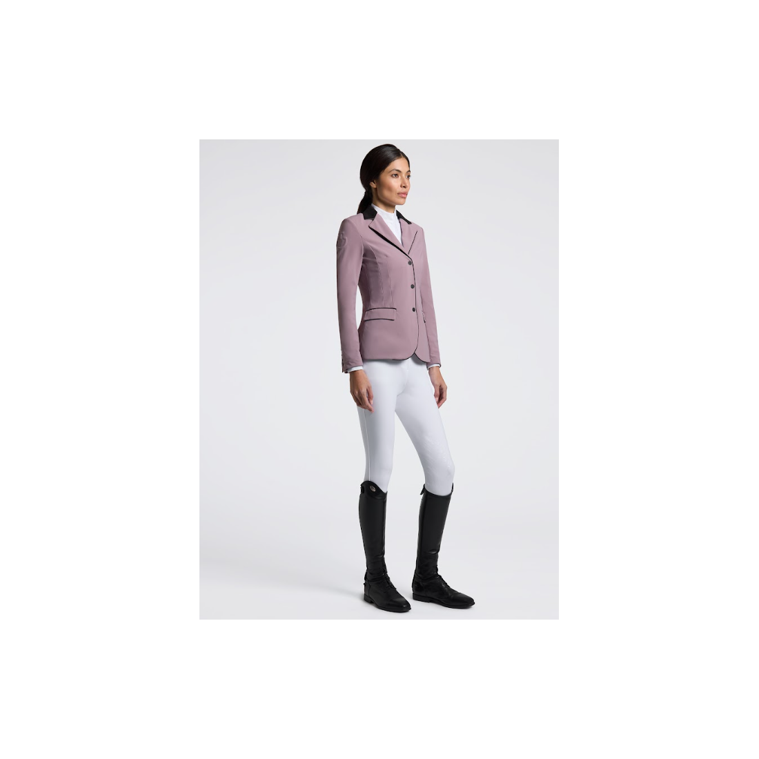 La veste de compétition femme Cavalleria Toscana présente une coupe classique et ajustée, rehaussée par un col et un passepoil en alcantara contrastant. Elle est dotée de deux poches avant, d'une fermeture à trois boutons et d'un logo discret en relief sur l'épaule. Sa coupe élégante est associée à un jersey technique extensible dans les quatre sens, respirant et déperlant. Elle épouse parfaitement les formes du corps et accompagne tous vos mouvements.